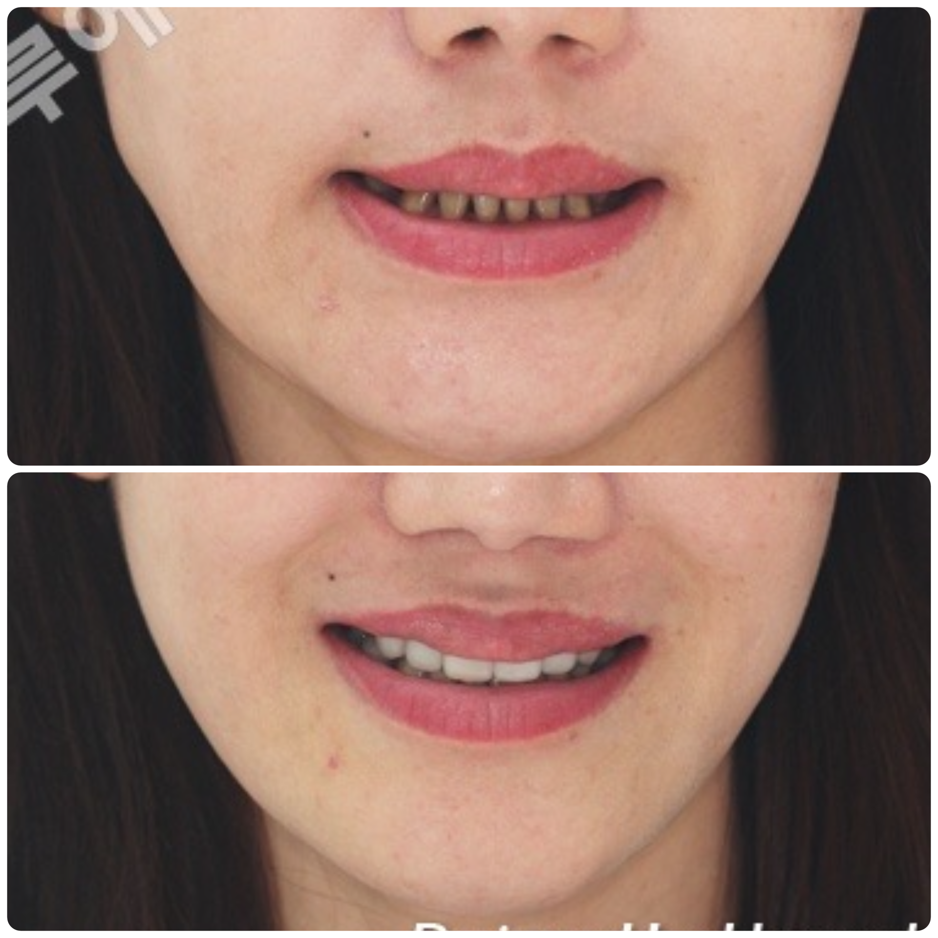앞니보철 속 이차우식이 심해 발치후 앞니임플란트 사례