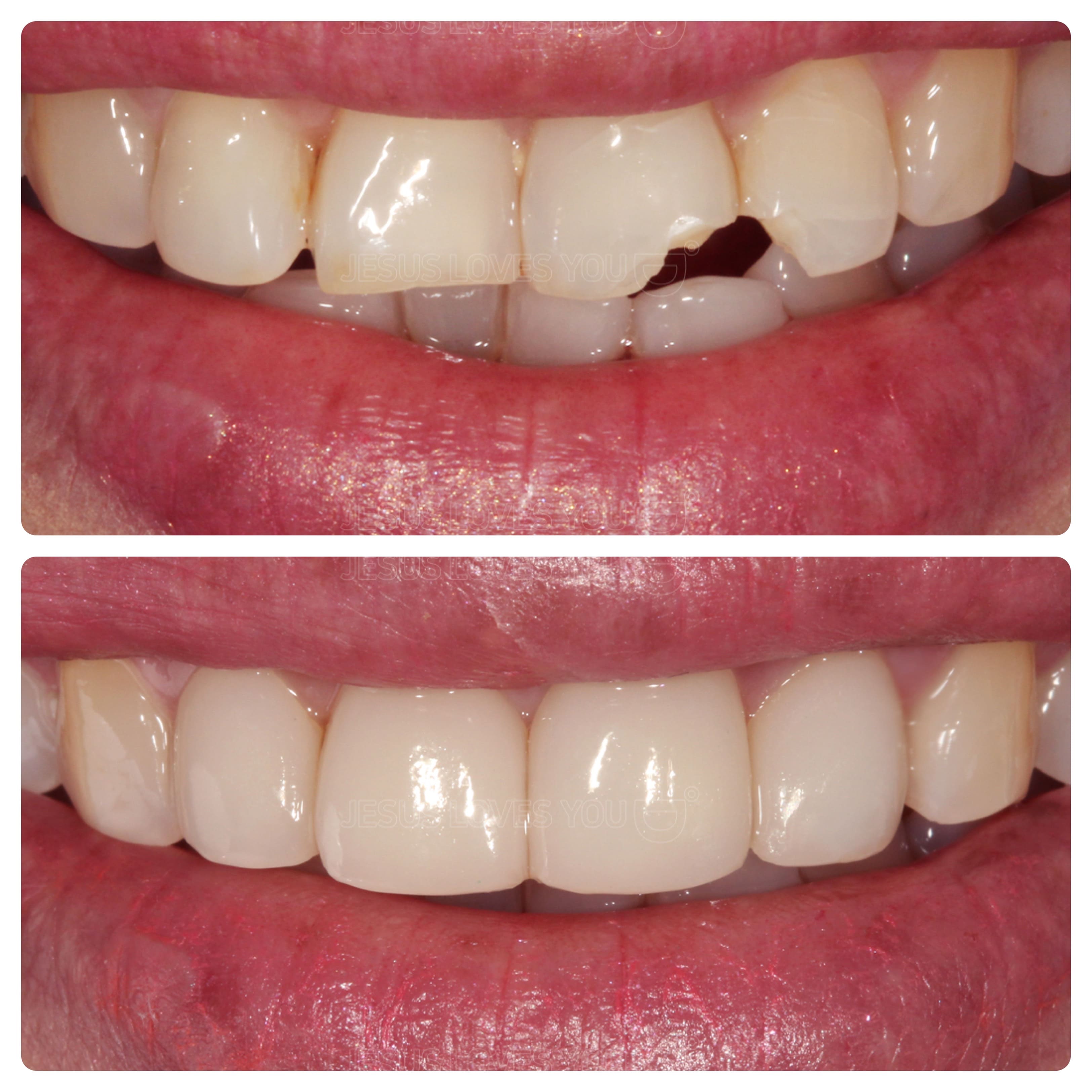 앞니가 부러져서 파절된 경우 대칭으로 치료해 4개 라미네이트 적용사례