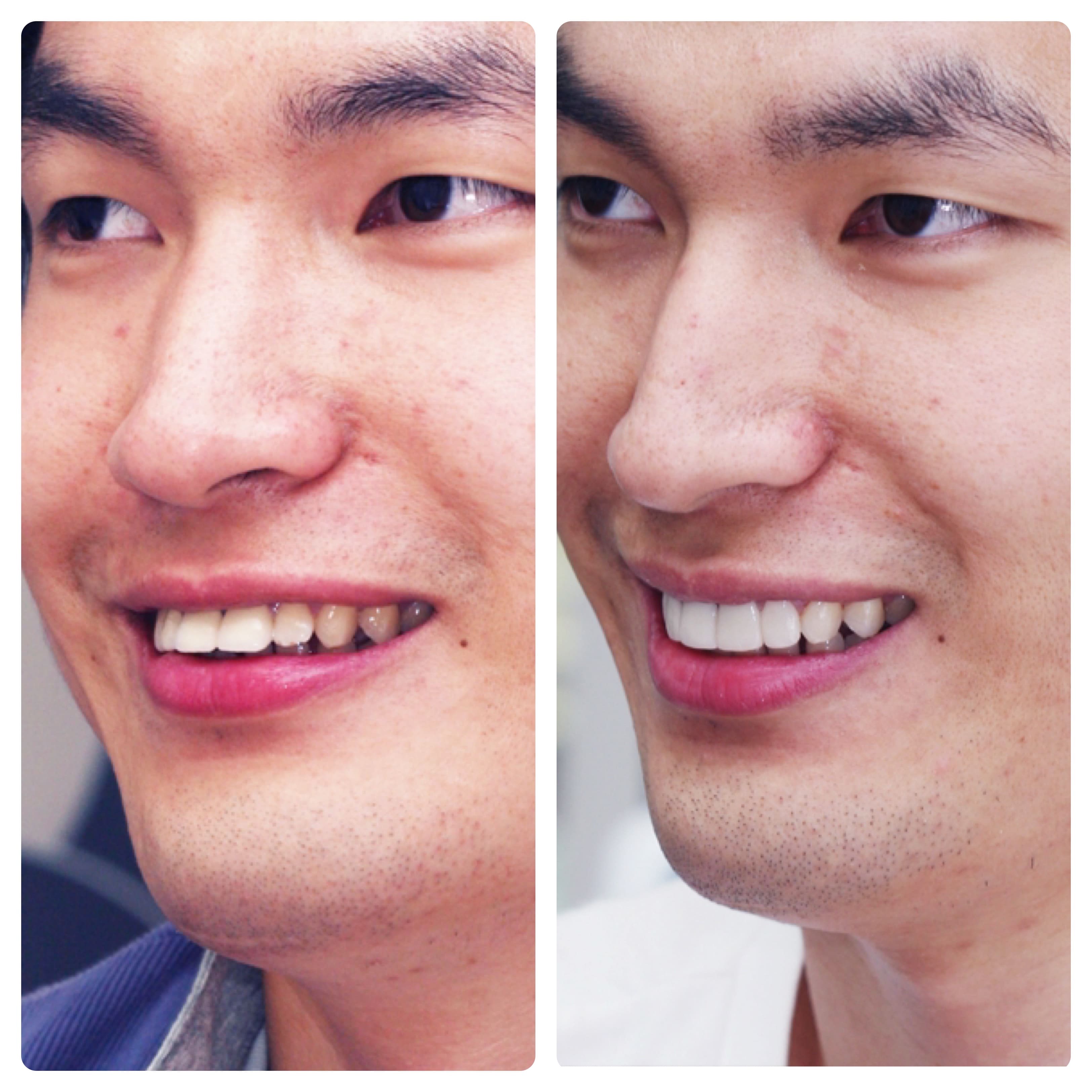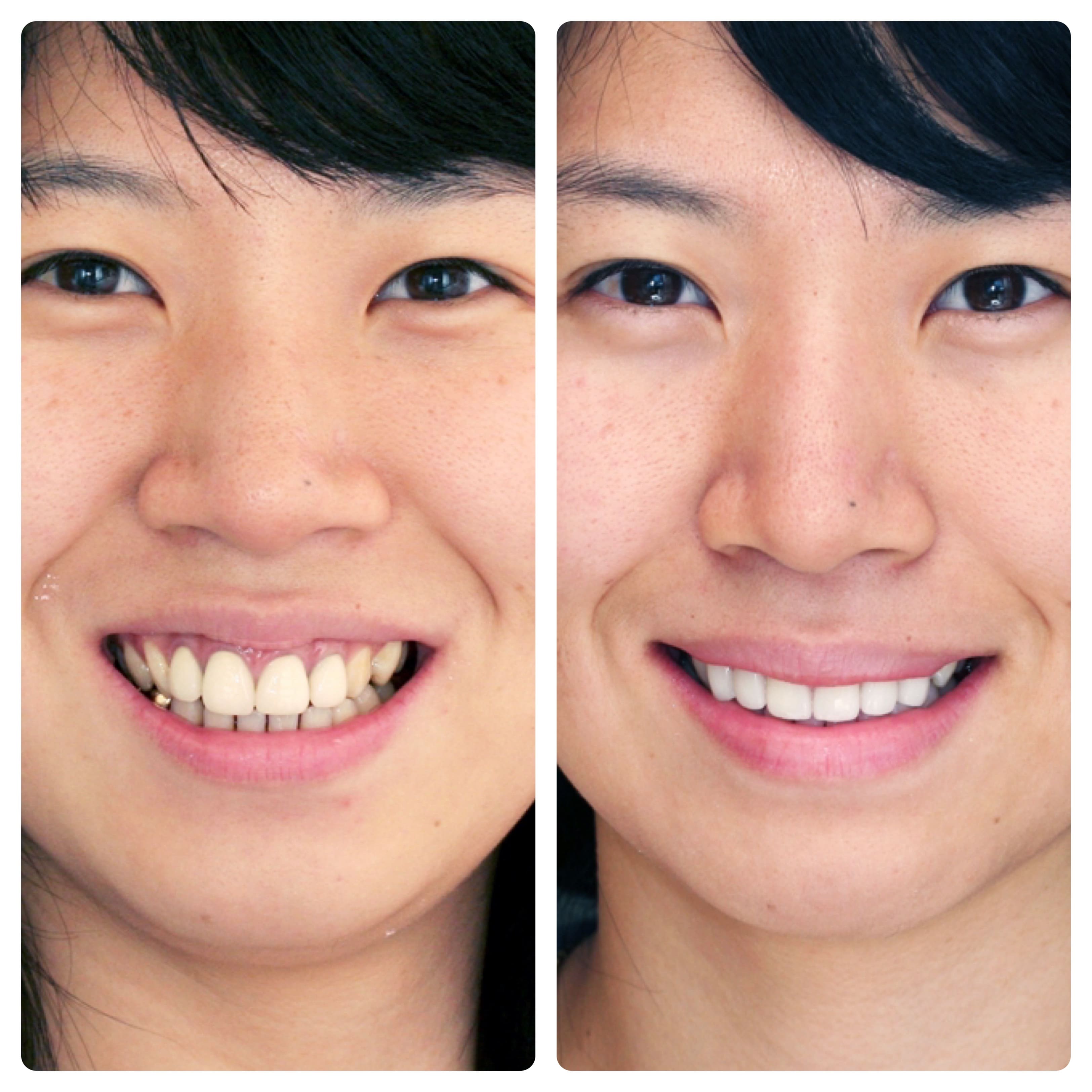 토끼이빨 앞니돌출 예방적신경치료후 올세라믹크라운2개 라미네이트8개 모델사례