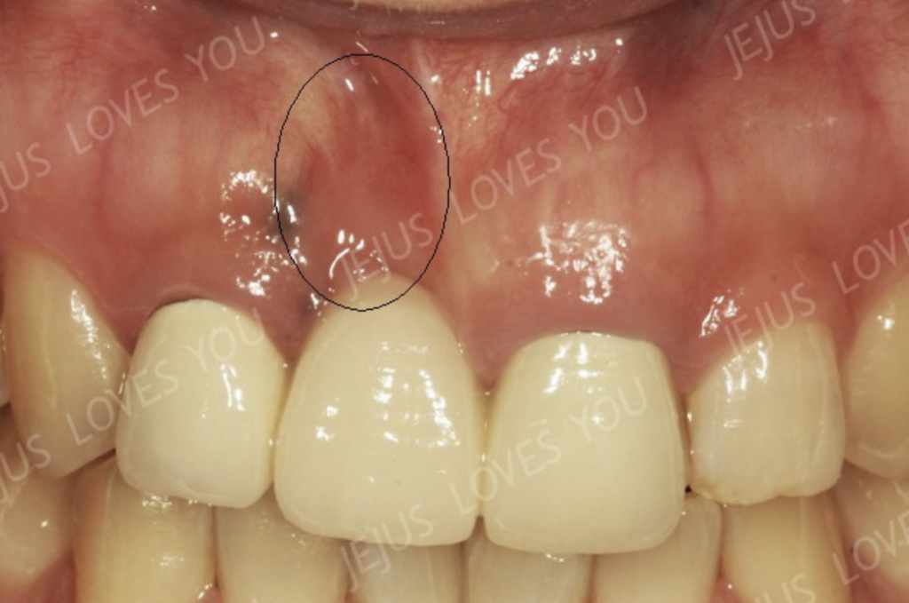 브릿지로 치료하게 되시면 어금니는 몰라도 특히 앞니 부위에서는 약간의 뼈소실이라도 있게 되면 스마일을 하실 때 치아와 잇몸경계부위에 어두운 그림자가 지게 됩니다. 이는 휴먼브릿지나 메릴랜드도 마찬가지입니다. 물론 치료직후부터 그런 현상이 두드러지지는 않지만 1년, 2년이 지나면서 점점 더 뼈소실양은 늘어가고 그림자는 뚜렷하게 형성될 수 있습니다.