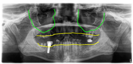 전체 내원 4회 (수술, 실밥, 스캔, 세팅) 치료기간 6개월에 모든 치료를 완료하셨습니다. 상악 좌우 구치부에 뼈이식한 부분은 초기고정이 약해서 수술시에 잇몸 속에 임플란트를 넣어두었어요.