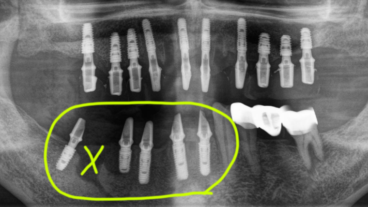 안녕하세요. 하루에치과 이한나원장입니다. 오늘은 전체임플란트 사례에서 염증으로 뼈가 많이 손실된 경우 뼈이식을 하지 않고 치료하는 방법을 소개해 드리겠습니다. 환자분들 중 임플란트의 치료원리를 잘 알지 못하는 경우 뼈이식을 하면 좋은 줄 아시는 경우가 꽤 있습니다. 간혹 어르신 중에는 뼈이식을 왜 안했냐고 소리를 치시는 경우도 있으니까요.