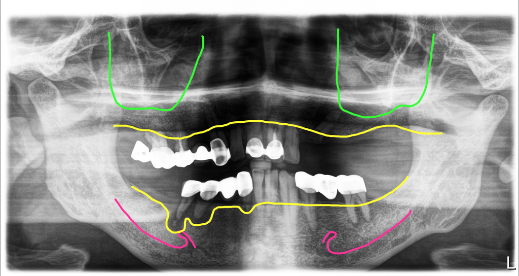 왼쪽 위에 치아가 여러개 없지만 오른쪽으로 계속 드시면서 치료를 미루고 계셨던 분입니다. 치아상태가 좋지 않다는 것은 알았지만 치아뿌리 속의 상태나 뼈의 상태는 환자는 알 수가 없잖아요. 오른쪽 마져 이제 씹는 것이 힘들어져서 전체적으로 치료를 하러 오셔서 파노라마 엑스레이를 찍었습니다.