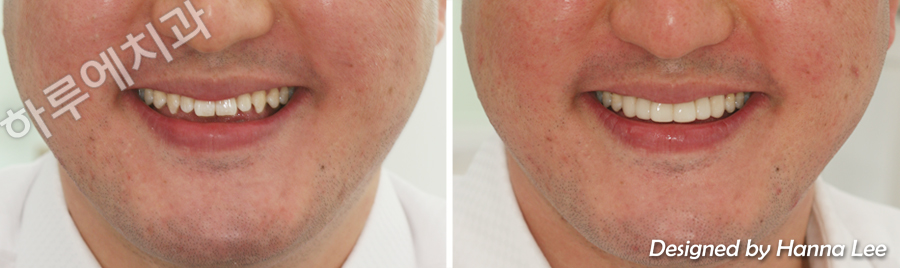 이런 경우에는 치아교정보다는 세라믹을 부착해서 하는 치료가 효과적이기도 하고 간단합니다.