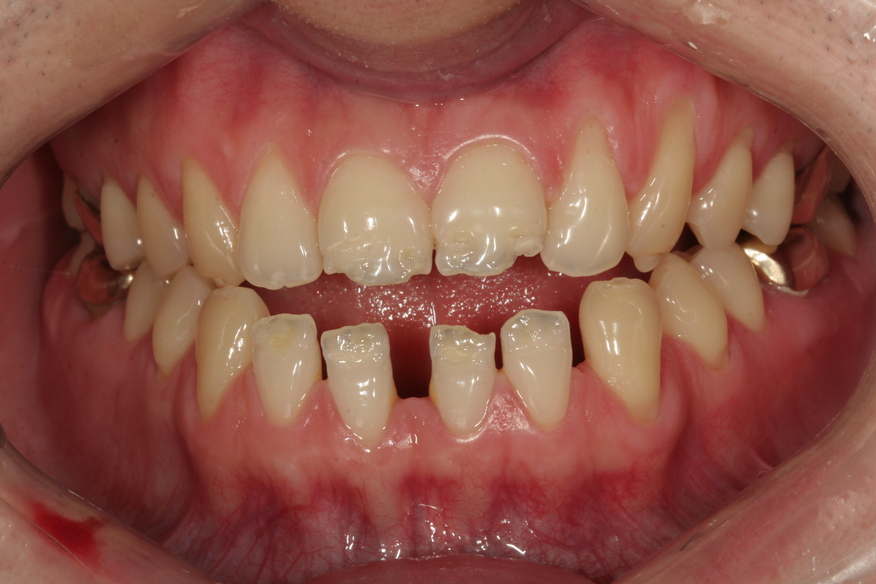이 케이스는 앞니가 서로 닿지 않는 개방교합과 하악전돌 경향이 함께 관찰되었습니다.
