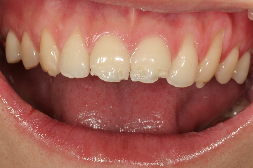 A. 치아미백은 자연치의 색을 밝게 하는 치료이고, 라미네이트는 색뿐 아니라 형태·길이·비율·대칭까지 함께 설계할 수 있습니다. 이 케이스처럼 마모/파절로 형태가 무너진 경우는 라미네이트가 더 적합할 수 있습니다.