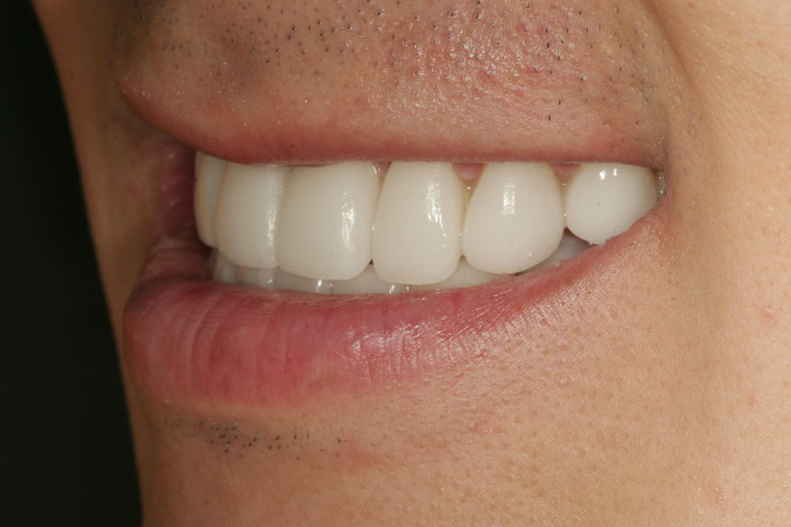 또한 세라믹 라미네이트 특유의 맑은 광택으로 치아미백을 한 듯한 밝고 깨끗한 스마일이 완성되어, 정면·측면 모두에서 자연스러운 인상 개선을 확인할 수 있습니다.