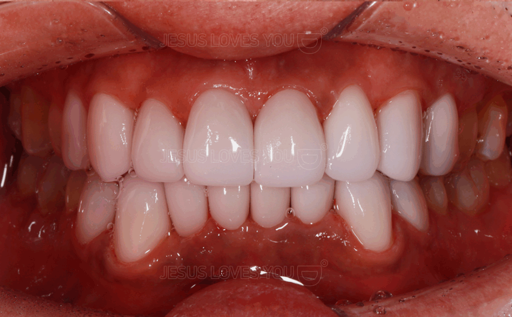 올세라믹은 금속이 없어 변색·부식·잇몸 착색이 없습니다.