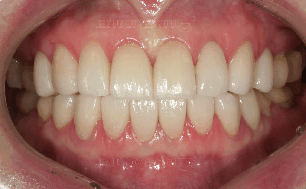 모든 치료가 완료된 후, 환자분께서는 확연히 달라진 모습에 크게 기뻐하셨습니다. 닳아 짧았던 치아가 이상적인 길이로 회복되었고, 틀어져 있던 치아 배열이 가지런하게 정리되었으며, 누렇던 치아는 깨끗하고 밝은 색상으로 변했습니다. 모든 고민을 해결하고 아름다운 미소를 되찾았다는 점에 큰 만족감을 표현하셨습니다.