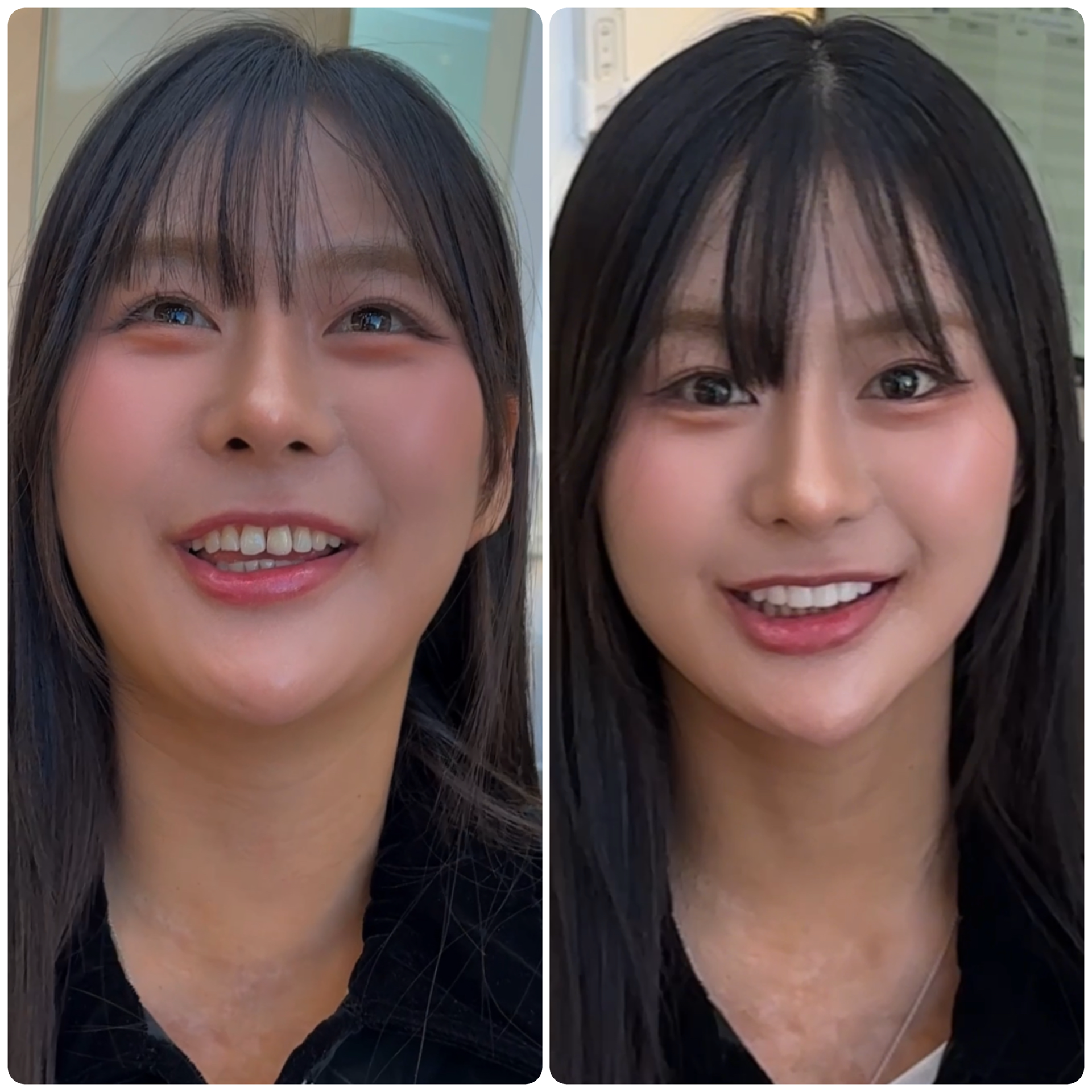 대체적으로 치아가 고른 사람은 치아를 전혀 삭제하지 않거나 무마취로 3시간이면 스마일 변신을 할 수 있습니다.