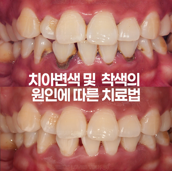 갈색치아 선천적치아변색(항생제변색)은 라미네이트 영구미백 치료사례