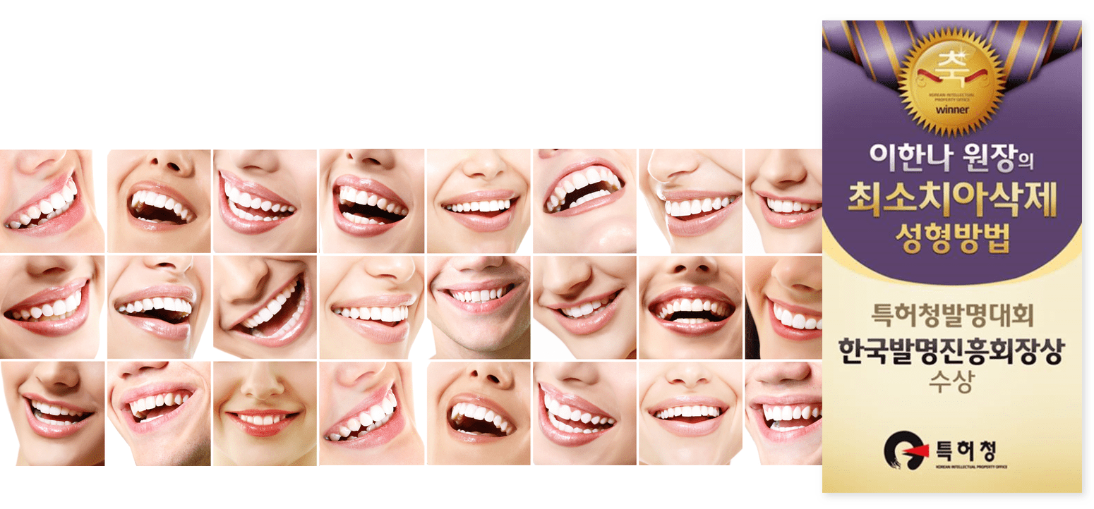 이한나 원장은 보다 더 적은 치아 삭제로 보다 더 아름다운 치아를 만들기 위해 다양한 치아 디자인을 만들었으며, 2009년에는 치아를 최대한 손상하지 않고 치아 모양을 예쁘게 만들 수 있는 치아 디자인 특허도 획득했습니다.